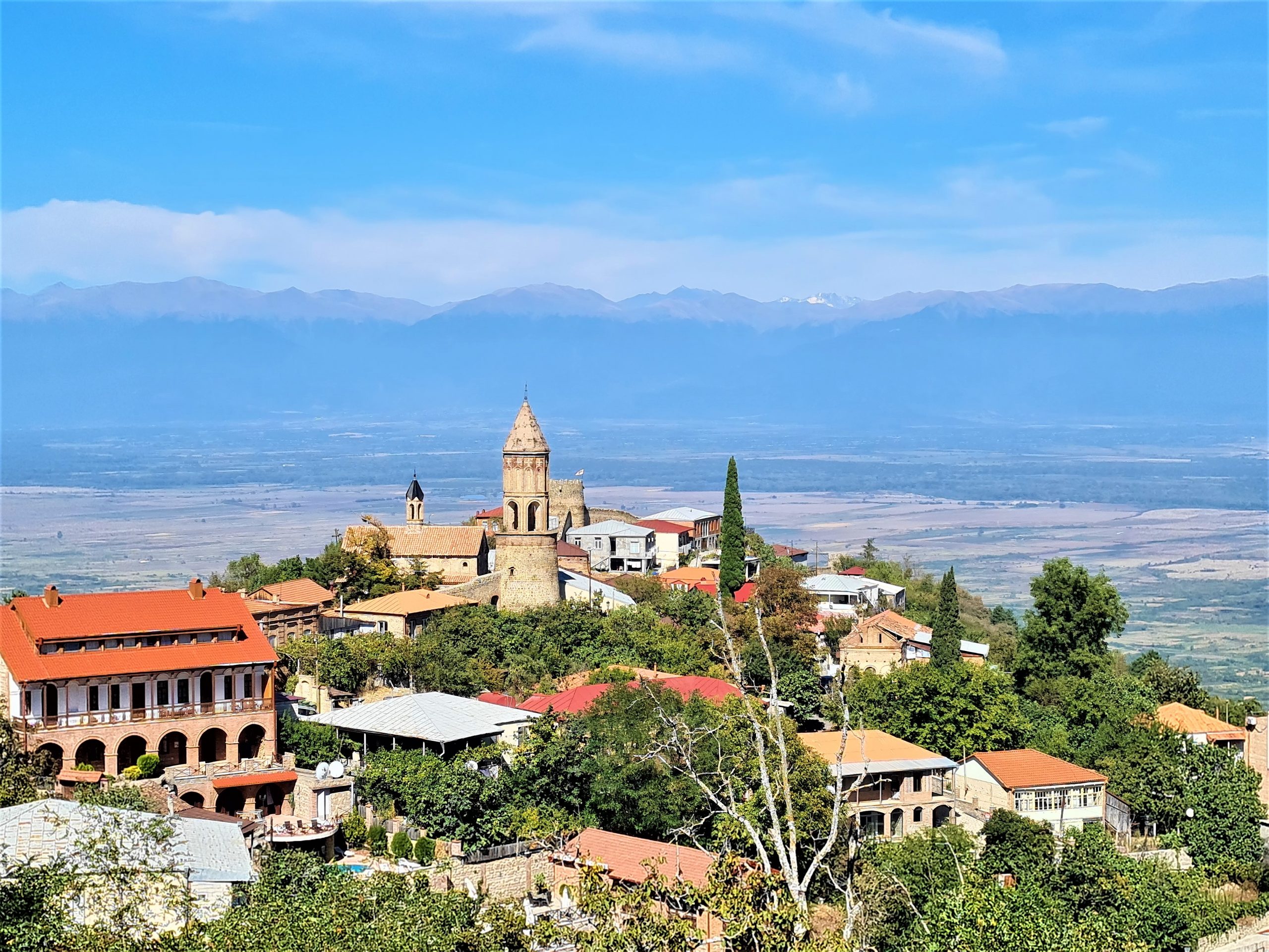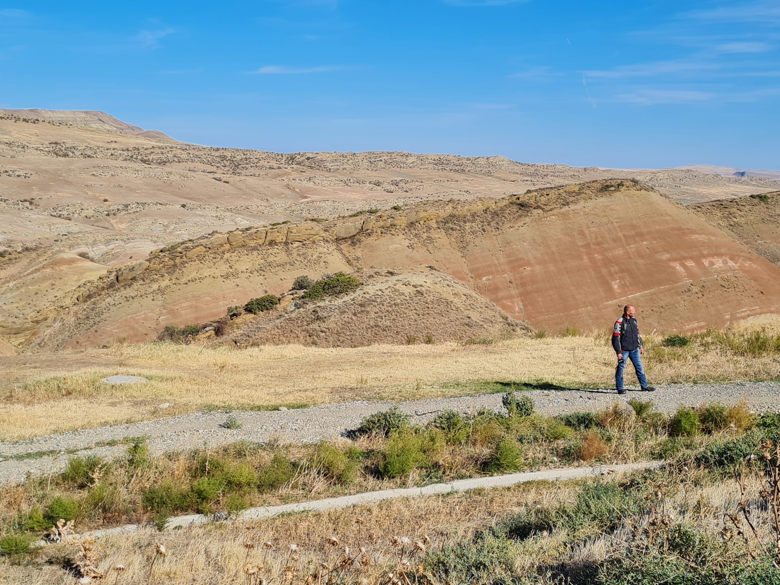 - Wir überqueren die Grenze nach Georgien und fahren weiter durch die von der Sowjetzeit geprägte Stadt Rustawi in die Halbwüste des Landes. Über abenteuerliche Pisten erreichen wir das faszinierende Davit-Gareja-Kloster, ein teilweise in Felsen gehauenes Kloster, das bis heute von Mönchen bewohnt wird. Danach folgen wir landschaftlich reizvollen Straßen vorbei an Salzseen, bevor wir über den Gombori-Pass nach Telawi gelangen – dem Zentrum der georgischen Weinregion Kachetien. Übernachtung in einem gemütlichen Gästehaus voller Geschichte und Charakter.