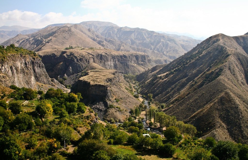 - Ein langer, aber spektakulärer Fahrtag steht bevor. Wir lassen die Hauptstadt hinter uns und steuern das Kloster Noravank an – aus dem 13. Jahrhundert und malerisch zwischen roten Felsen gelegen. Die Natur rundherum ist überwältigend schön. Weiter südlich führt uns eine 20 km lange Schotterpiste nahe an die iranische Grenze. Der Verkehr dort verrät die Nähe zum Nachbarland. Je weiter wir fahren, desto bergiger und kurviger wird es. Schließlich erreichen wir das eindrucksvolle Tatev-Kloster aus dem 9. Jahrhundert, das hoch über einem tiefen Tal thront. Übernachtung in charmanten Cottages bei Harsnadzor, mit fantastischem Blick auf die grüne Berglandschaft